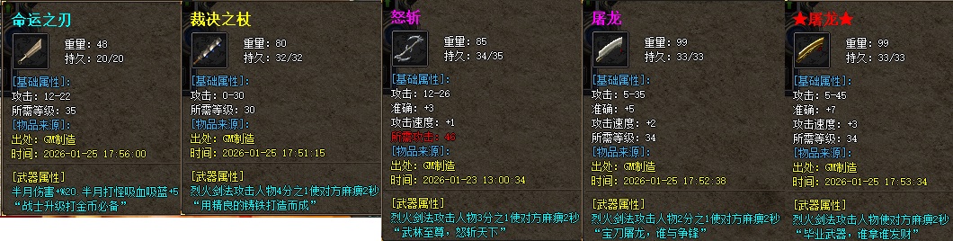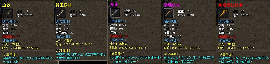 ★装备设置:商店白色-沃玛蓝色-祖玛黄色-赤月粉色,武器★屠龙★、★嗜魂法杖★、★逍遥扇★为终极武器、四格装备★